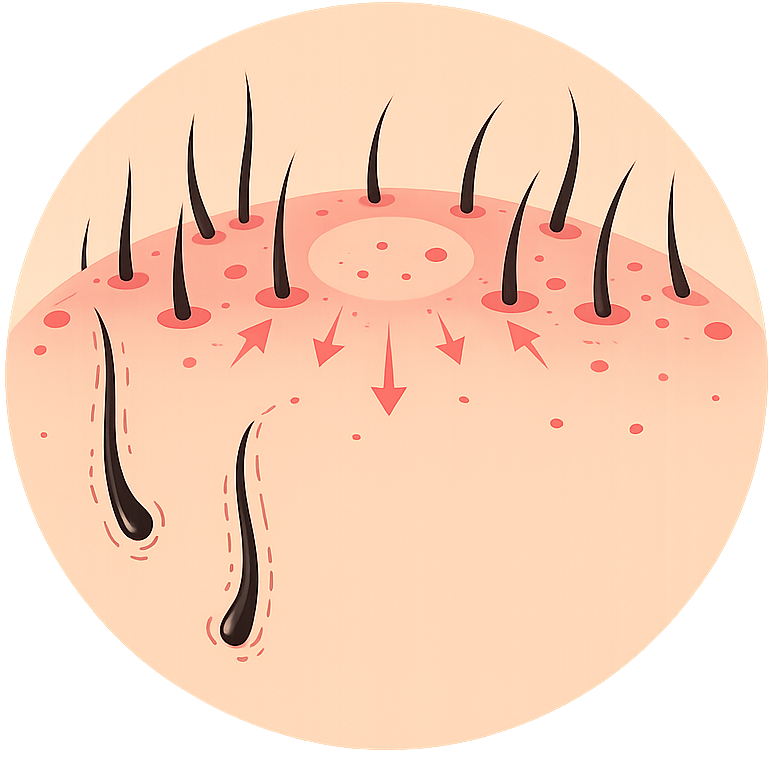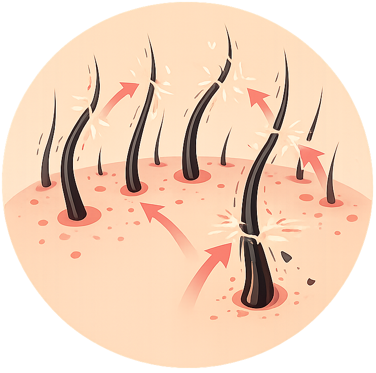 Косопадът не се появява изведнъж. В повечето случаи започва от отслабване на фоликулите, лошо кръвообращение в скалпа, стрес, хормонален дисбаланс или недостиг на важни хранителни вещества. С времето косъмът изтънява, растежът се забавя и скалпът губи способността си да поддържа здрава и плътна коса.